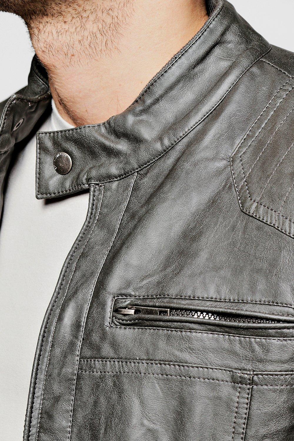 Grandad Collar Multi Zip PU Biker Jacket boohoo NO