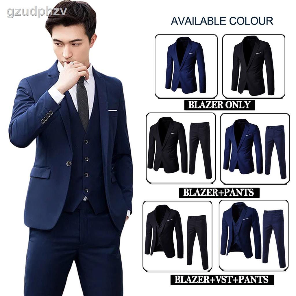 stock 3 Piece Set Men Blazer Set Suit Formal Business Wedding Korean Office Outerwear Slack Pants Jacket Tuxe Shopee Malaysia
