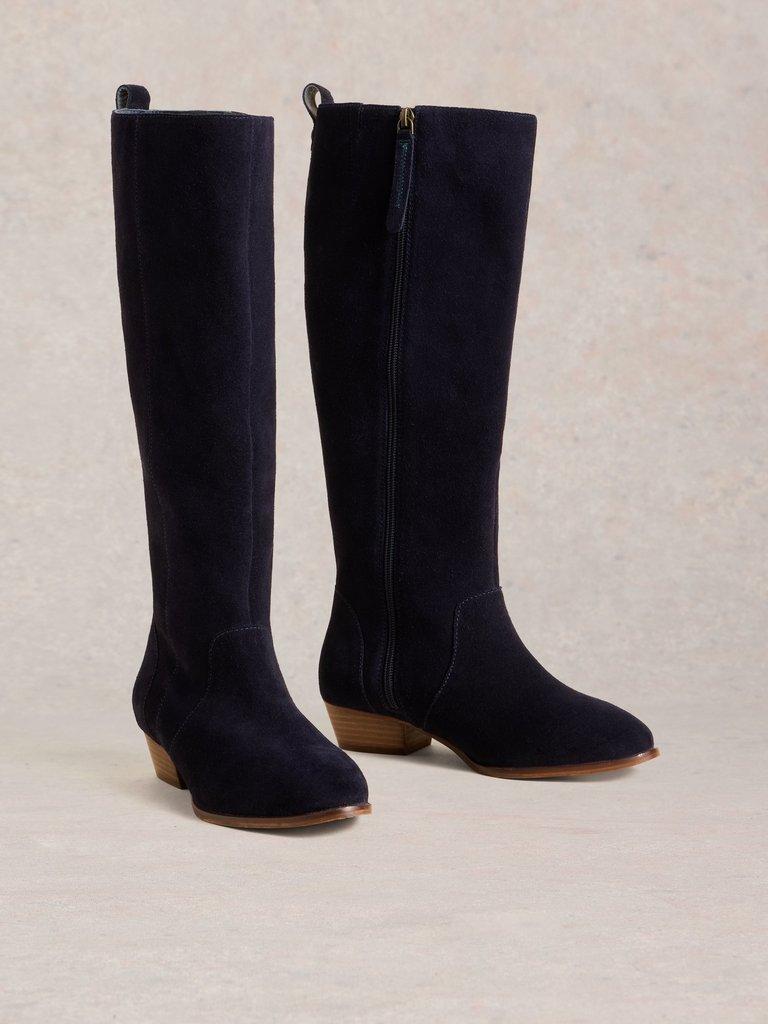 Wide Fit Suede Knee High Boot in DARK NAVY White Stuff