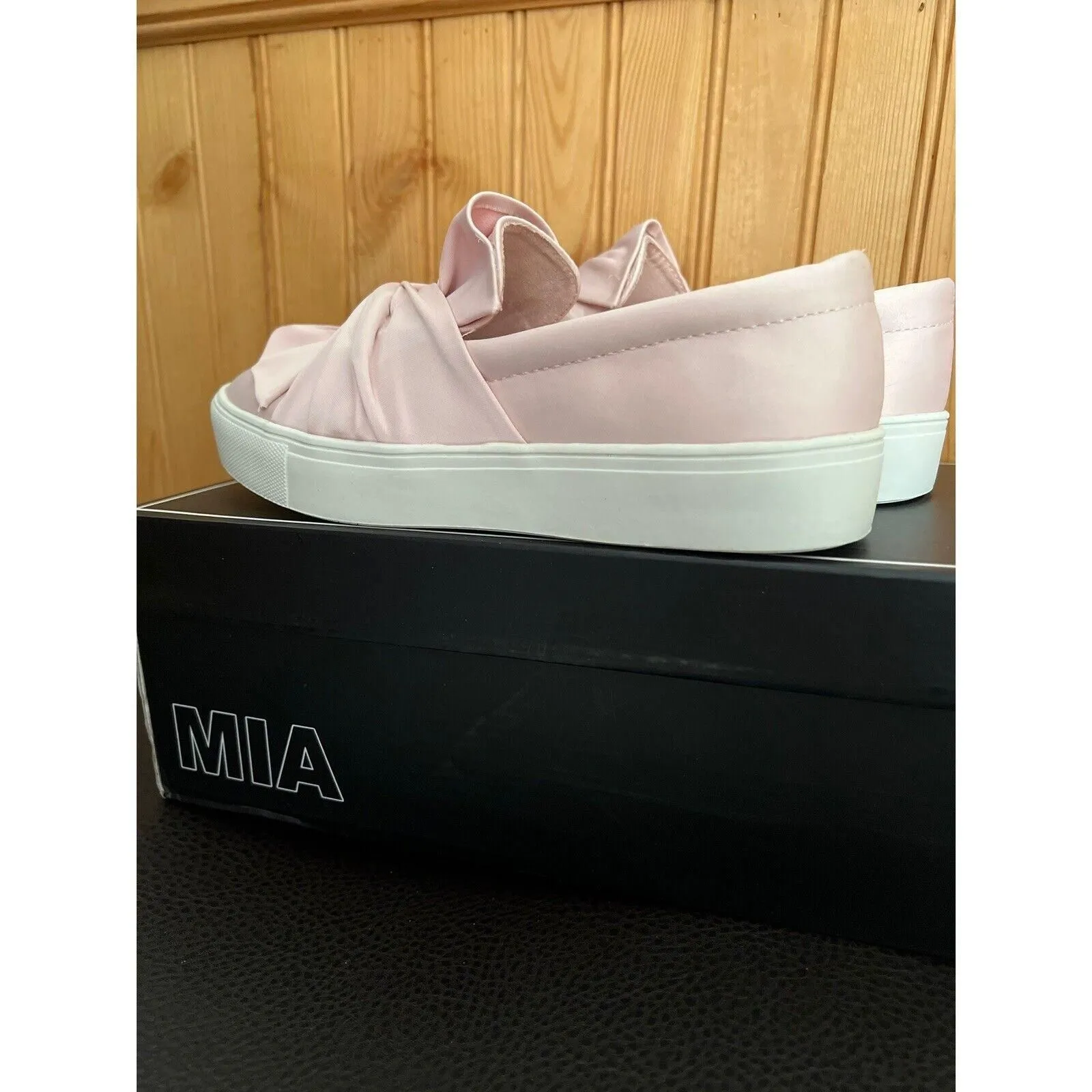 New MIA Zani Bow Sneakers Blush PINK Satin shoes slip ons 6 Whatnot Buy Sell Go Live