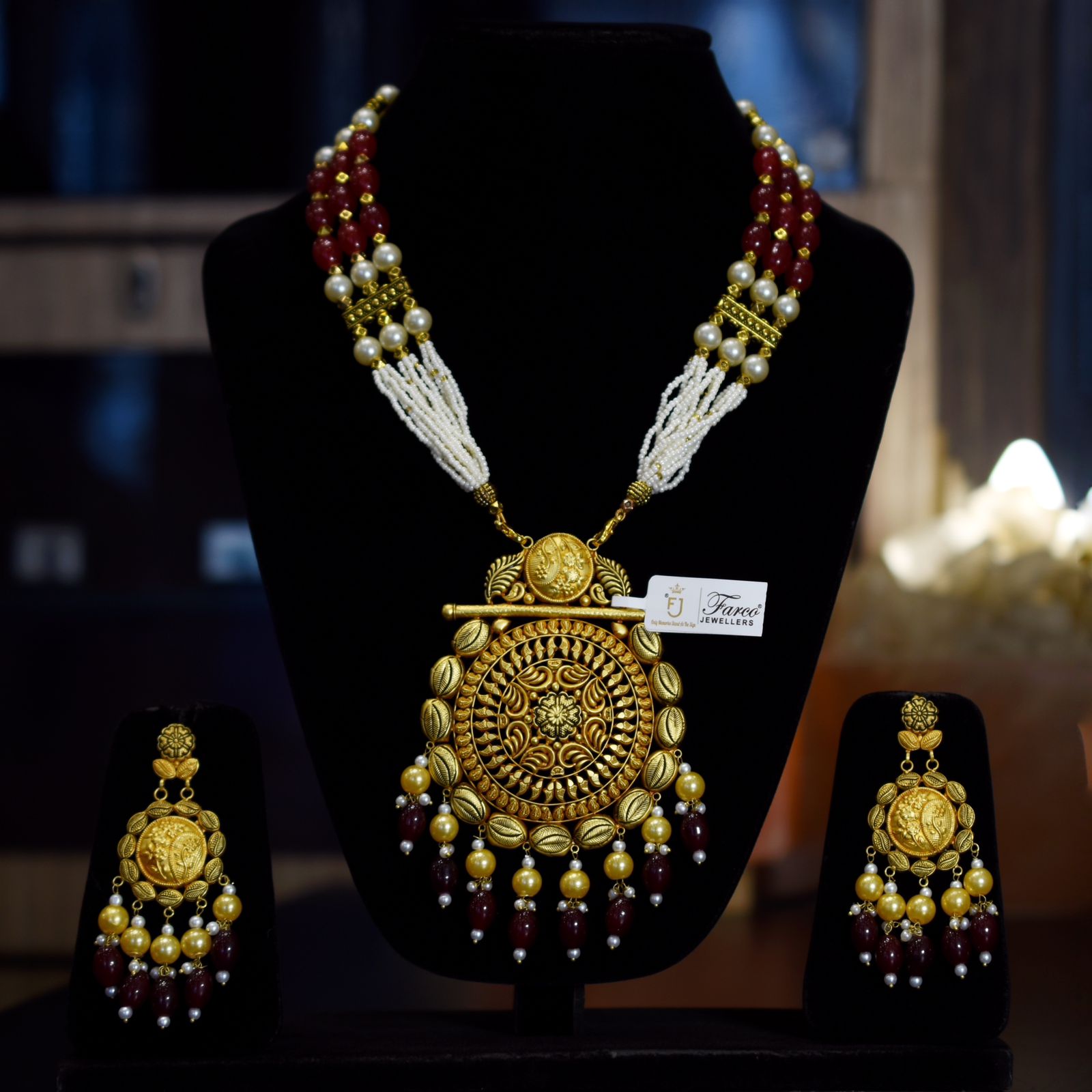 Golden Traditional Moti Necklace Set 2 Line Size 30 at Rs 100 set in Mumbai