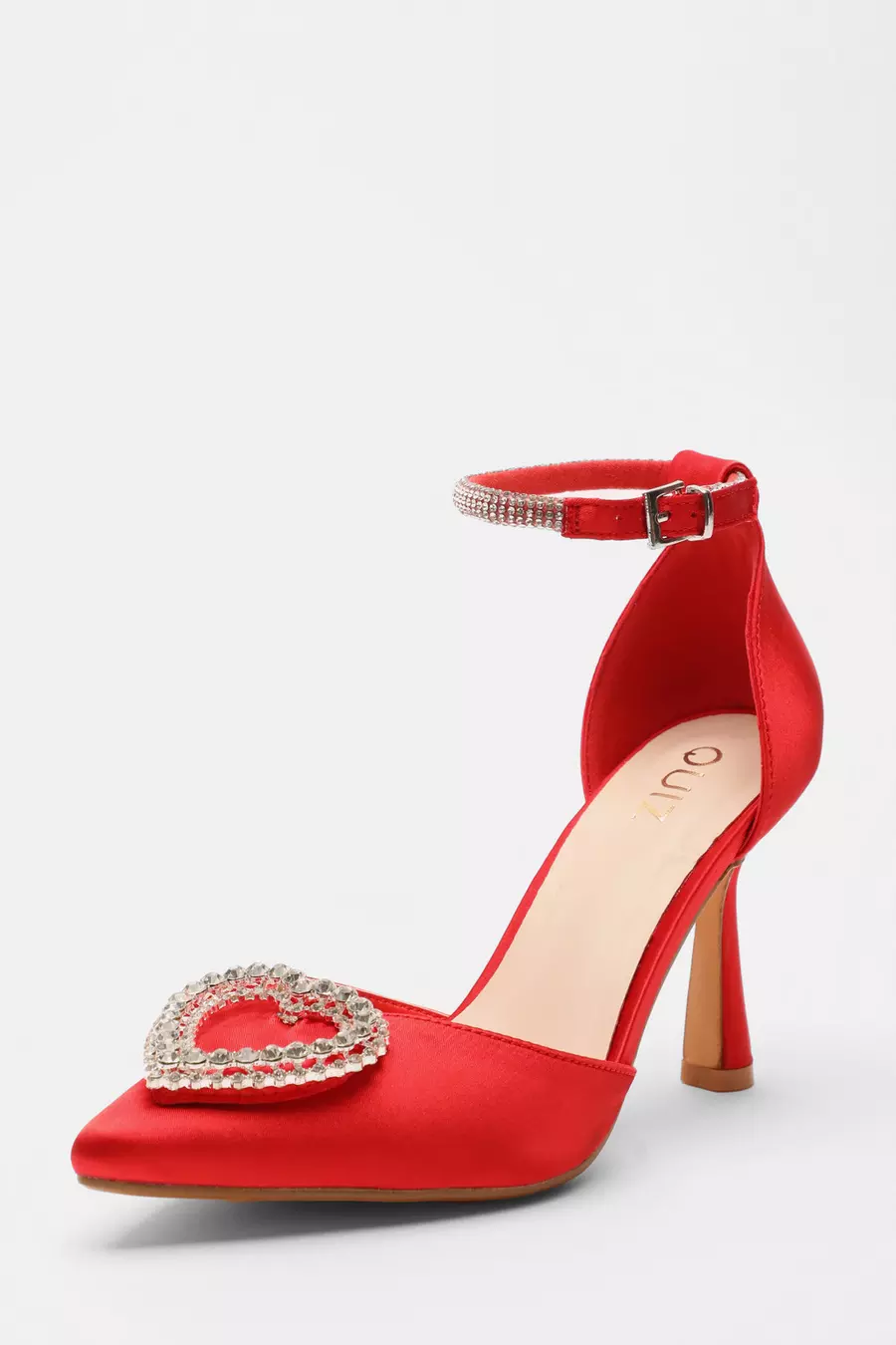 Red Satin Diamante Heart Brooch Court Heels QUIZ Clothing