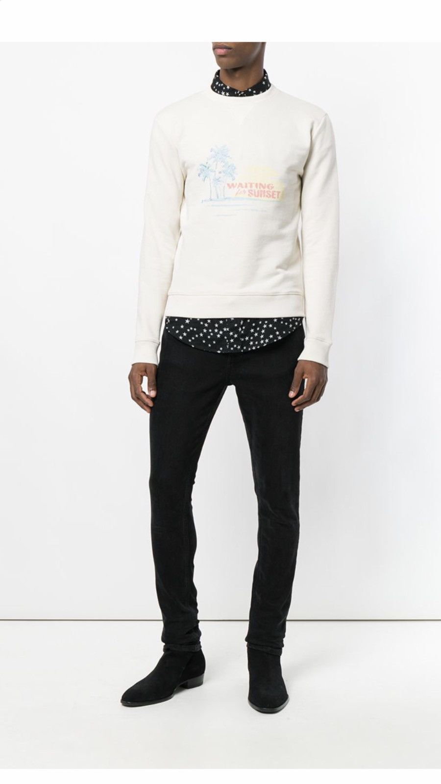 Saint laurent waiting for sunset hoodie cheap, Buy Saint Laurent Waiting For Sunset Embroidered Crewneck Jersey Sweater Ivory 500651 YB2OG 9175 GOAT cheap