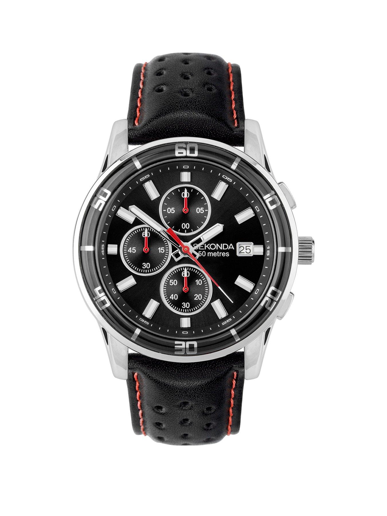 Sekonda Midnight Black Perforated Leather Strap Chronograph Watch Very Ireland