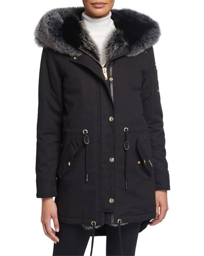 Moose Knuckles Steller Fox Fur trim Canvas Parka W Rabbit Fur Hood In Black ash cement Fur ModeSens