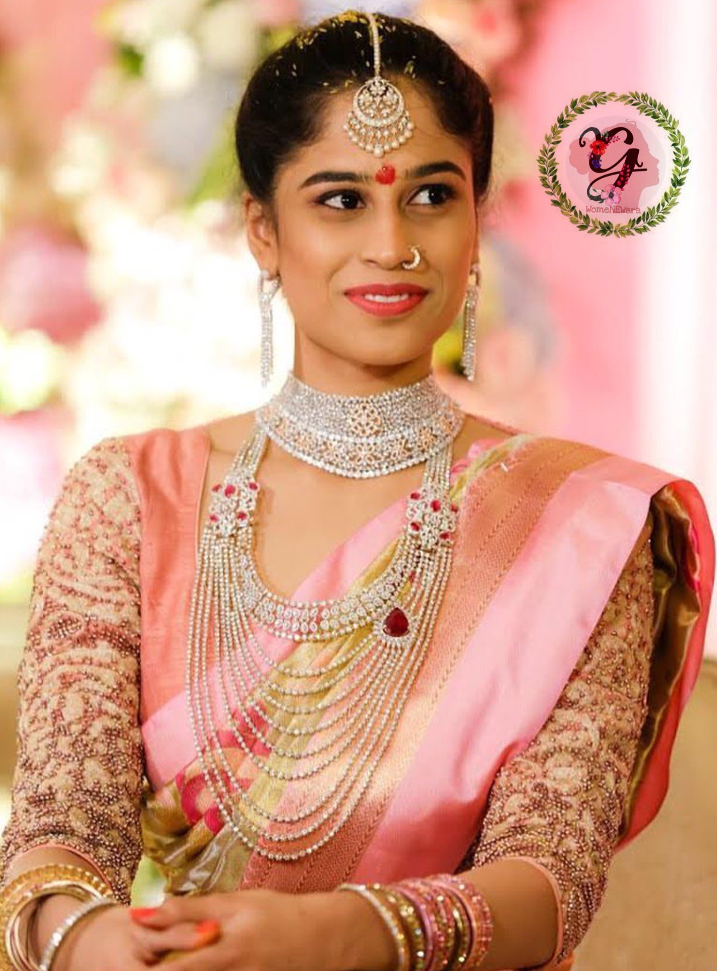 YUGA Women s Fashion Lifestyle on X A Charming Telugu bride in Pastel kanjeevaram saree with beads embellished blouse looks elegant. She accessorized her look with unique and stunning diamond jewelry