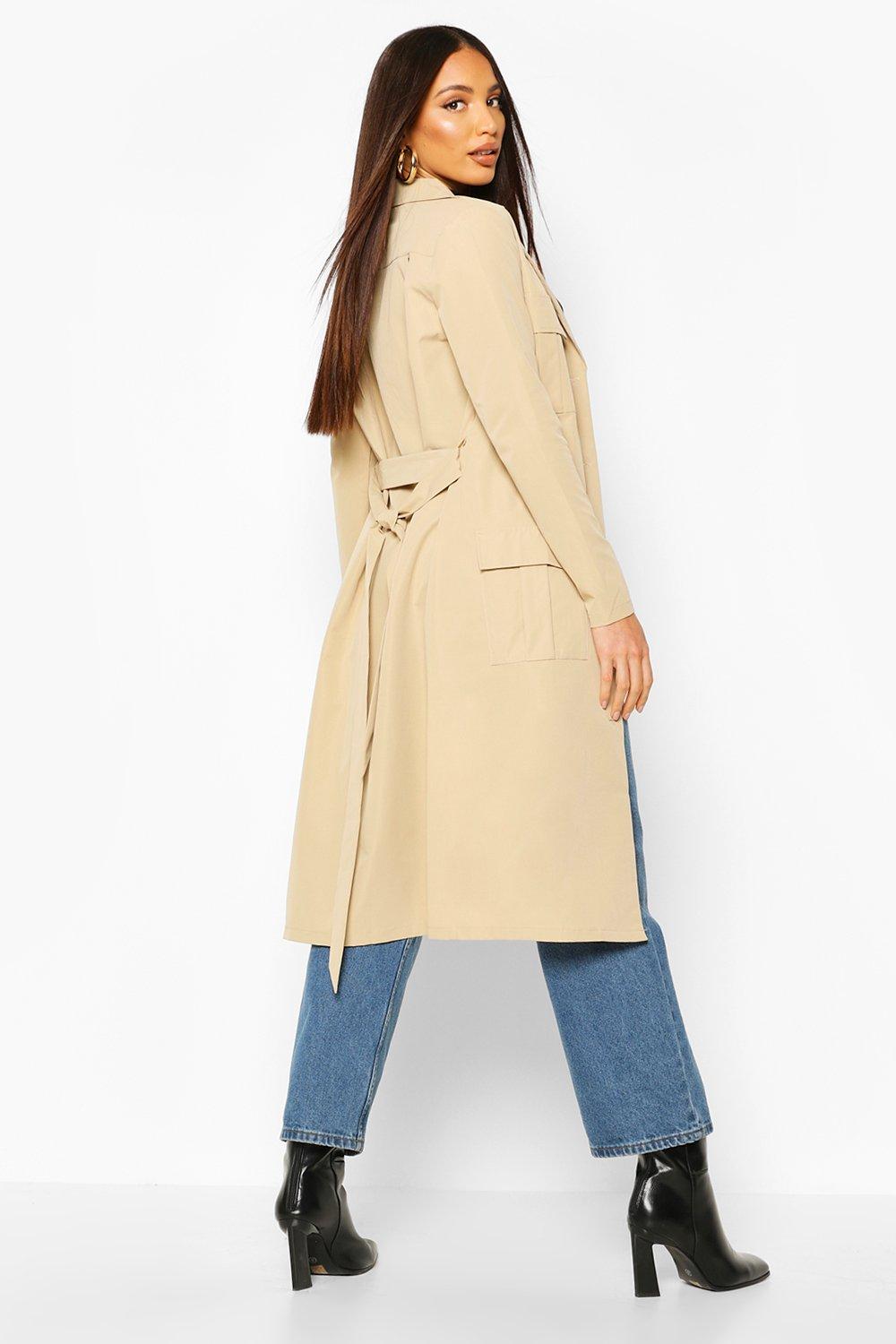 PrettyLittleThing Khaki Tall Tie Waist Trench Coat UK 12