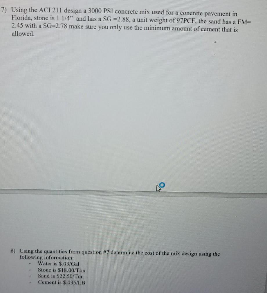 Solved 7 Using the ACI 211 design a 3000 PSI concrete mix Chegg