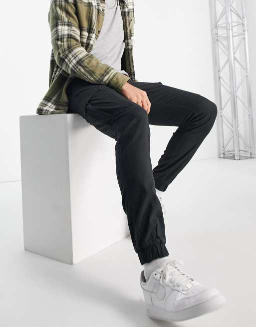 Black intelligence slim fit cargo trousers cheap, Jack Jones Intelligence slim fit cargo pants in black cheap