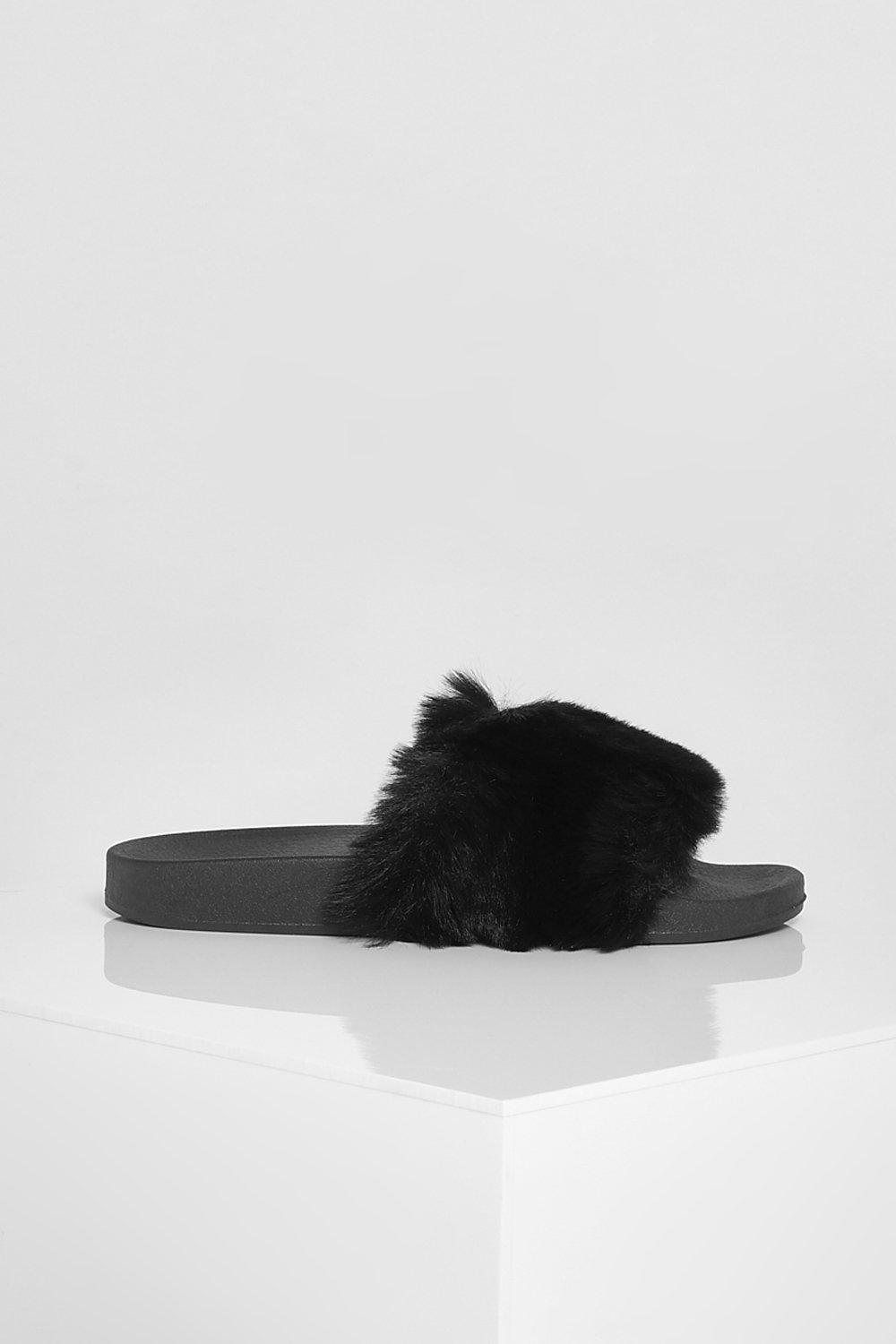 Buy Boohoo Faux Fur Fluffy Slides In Black 6thStreet Oman