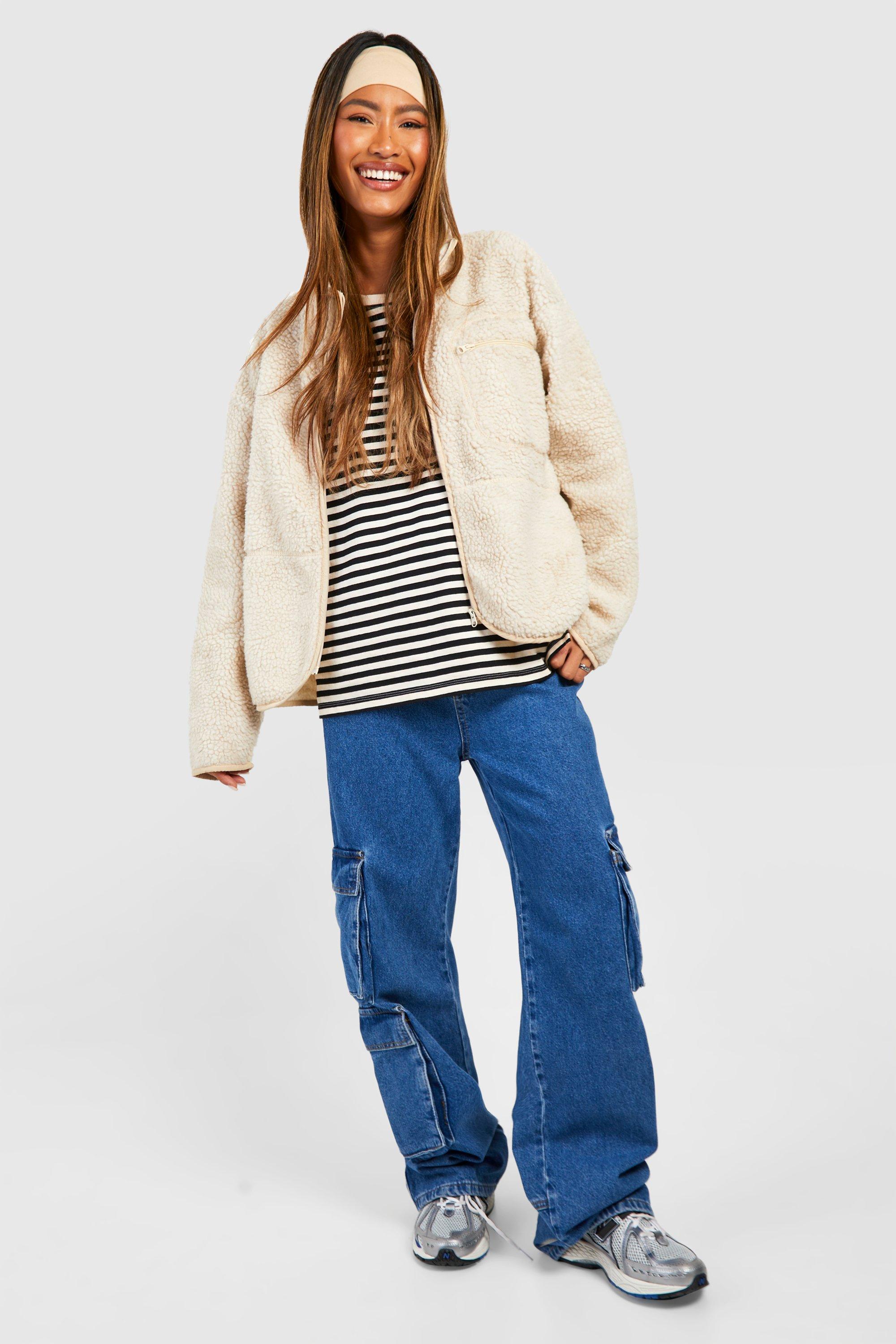 Oversized Teddy Zip Detail Jacket boohoo UK
